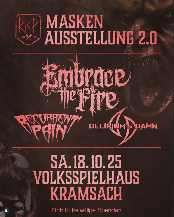 Get ready for a night full of energy and heavy riffs at Masken Ausstellung 2.0 on October 18th, 2025!Live on stage: